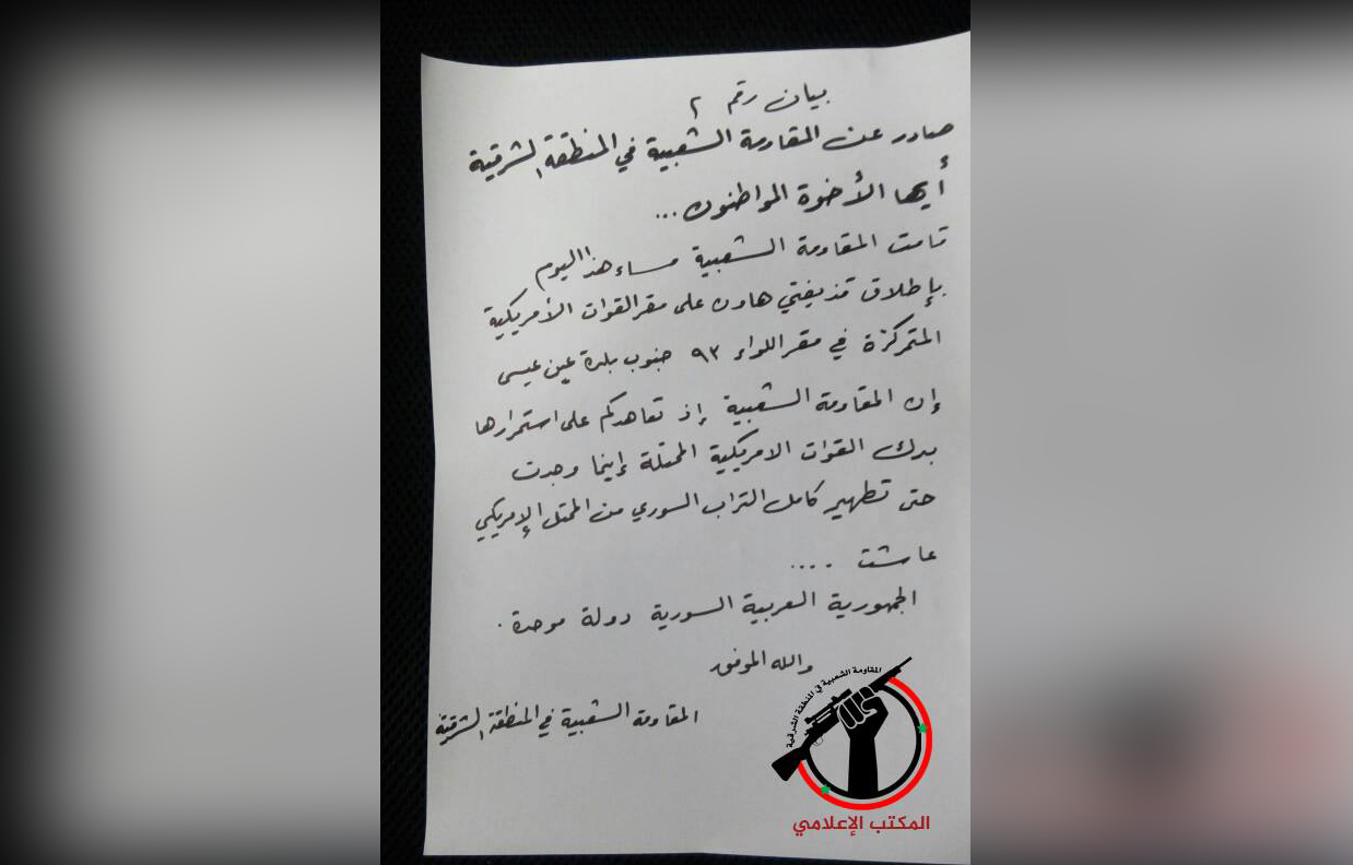 اقرأ المزيدفي يوم (16) من شهر نيسان، خرجت في مدينة الرقة، الخاضعة لسيطرة قوات سوريا الديمقراطية (قسد) المدعومة من الولايات المتحدة الأمريكية، مظاهرة مؤيدة لنظام بشار الأسد وضد الوجود الأمريكي في سورية. وعلى الرغم من أن المظاهرة لم تدُم إلا دقائق قليلة، ولم يتجاوز عدد المشاركين فيها (50) شخصاً معظمهم نسوة وأطفا...